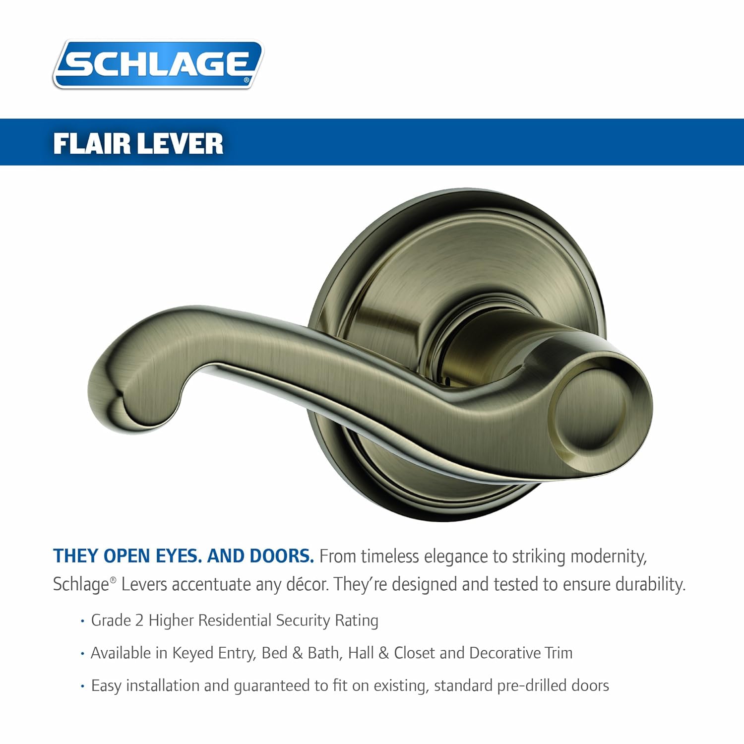 Solid Antique Brass Schlage F40fla609 Flair F40 Flat Wave Reversible Door Lever Lockset Door Levers Ball Design Videofield Gun 130 Mm